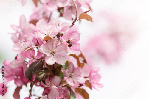 Fototapeta premium Pink spring flowers with bee