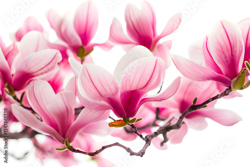 © Starmarpro, Fototapeta premium Pink spring magnolia flower isolated on white. High quality photo