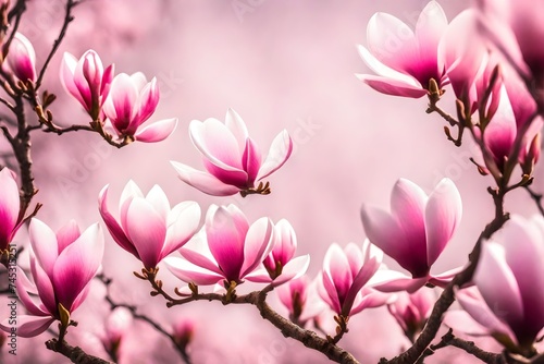 Fototapeta premium Pink spring magnolia flowers branch set of different beautiful flowers on...
