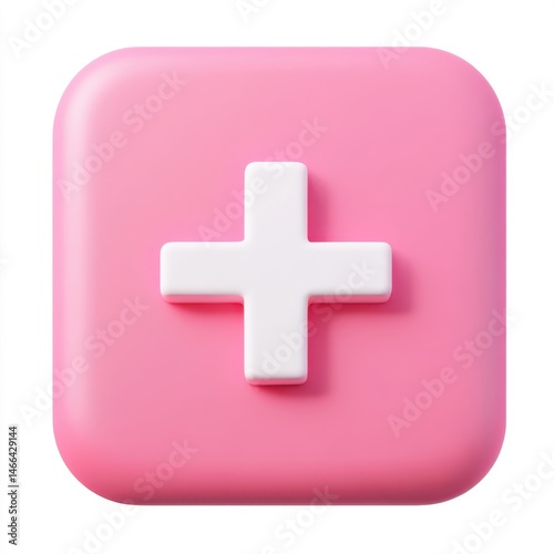 © PNG Stock , Fototapeta premium Pink square with plus sign isolated on white background