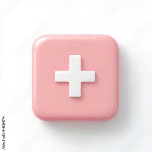 Obraz premium Pink square with white cross isolated on white background