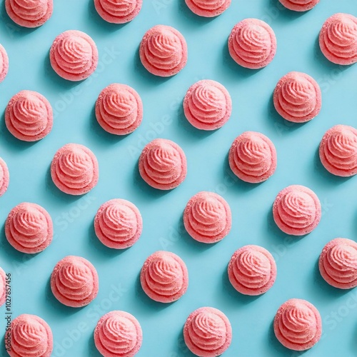 © Donald, Obraz premium pink strawberry ice cream pattern on pastel blue background summer minimalism isometric flat lay