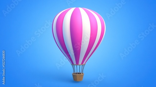 © Lesuna, Naklejka premium Pink Striped Hot Air Balloon Against Blue Background