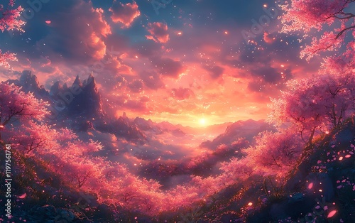 © Crestiva Creative, Fototapeta premium Pink Sunset Mountain Landscape Art