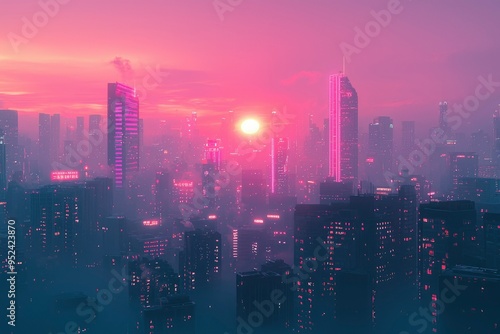 © talkative.studio, Fototapeta premium Pink Sunset Over a Futuristic Cityscape