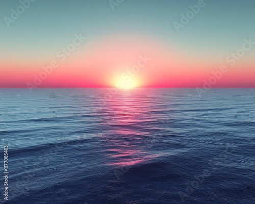 © Ira, Obraz premium Pink sunset over calm ocean. (9)