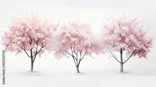 © PikePicture, Naklejka premium pink trees isolated on white background