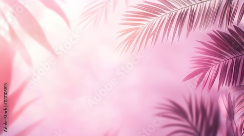 © RN 3540, Fototapeta premium Pink tropical palm leaves and sunlight shadows background.