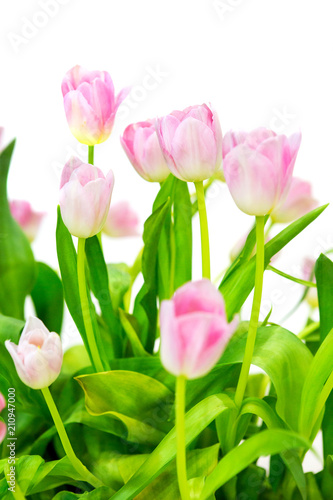 © titipong8176734, Naklejka premium Pink tulip on a white background.
