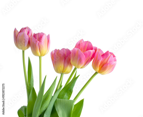 © nata777_7, Fototapeta premium Pink tulip on white background.