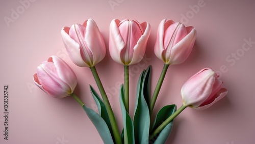 © Cyber Shutter, Fototapeta premium Pink tulips against a pink backdrop