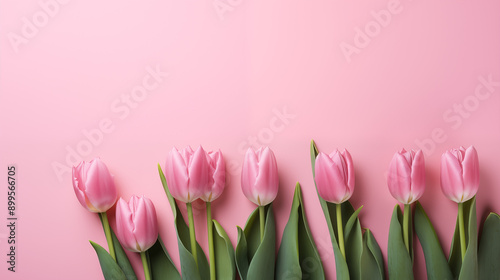 Naklejka premium Pink Tulips Aligned in a Row Against a Soft Pink Background