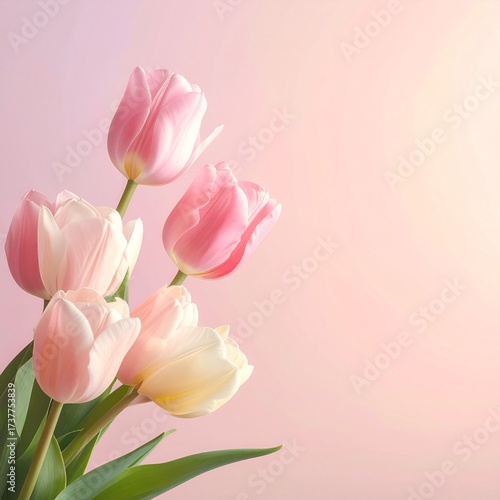 © Ans, Fototapeta premium Pink Tulips Blooming on a Soft Backdrop