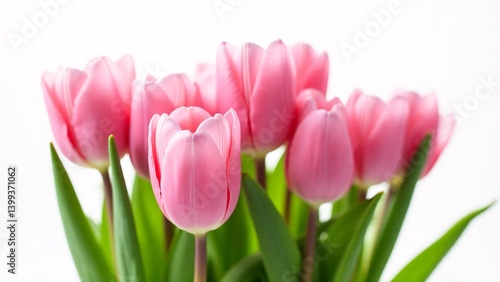© Chrishen, Fototapeta premium Pink Tulips Bouquet On White Background