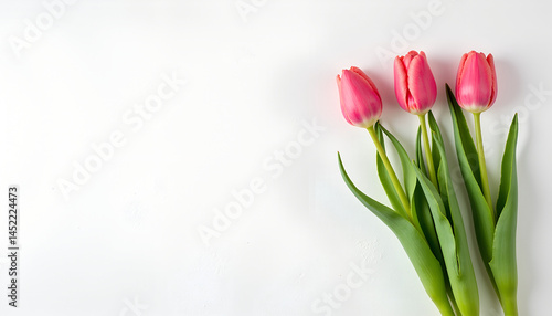 © Vera, Fototapeta premium Pink Tulips Celebrating Mother's Day Against a White Background