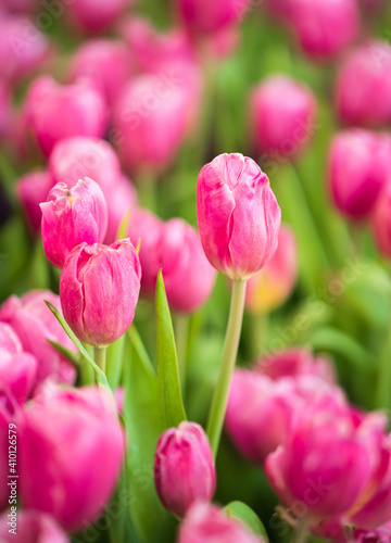 Fototapeta premium Pink tulips flowers blooming in garden