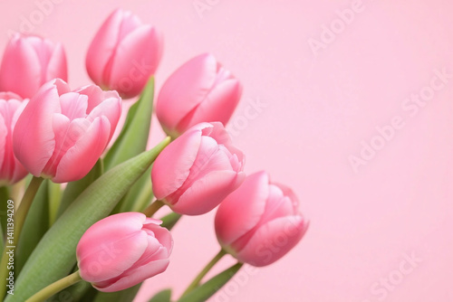 © He, Fototapeta premium pink tulips in a vase on a pink background