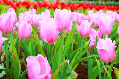 Naklejka premium pink tulips in the garden