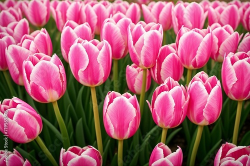 Fototapeta premium Pink tulips in the garden. Spring flowers. Tulips background.