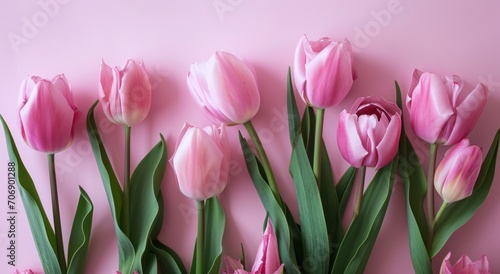 Fototapeta premium pink tulips next to a pink background