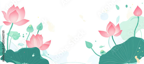 © 涛 李, Fototapeta premium pink tulips on a green background