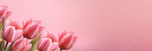 © Nice Seven, Fototapeta premium Pink Tulips on a Pastel Pink Background