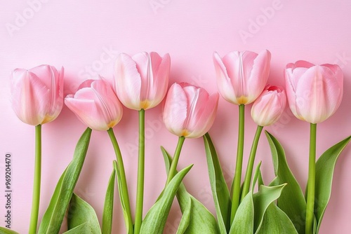 Fototapeta premium Pink Tulips on a Pink Background