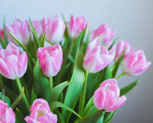 © Olya, Naklejka premium pink tulips on white background