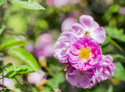 © saiyai, Obraz premium Pink vine roses with green background in the garden.