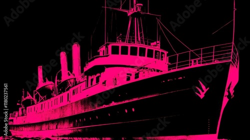 © SYAFI STUDIOS, Obraz premium Pink vintage ship on dark background. Possible stock photo use.