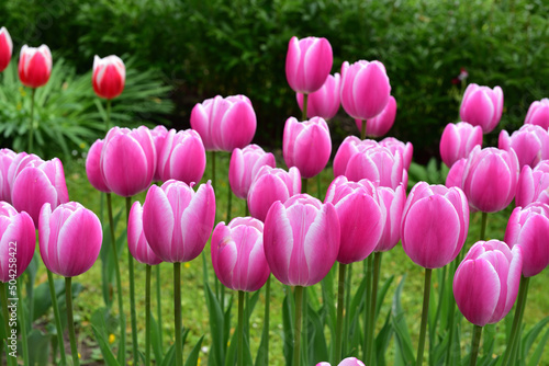 © Diana M., Fototapeta premium Pink/violet tulips blooming in spring time