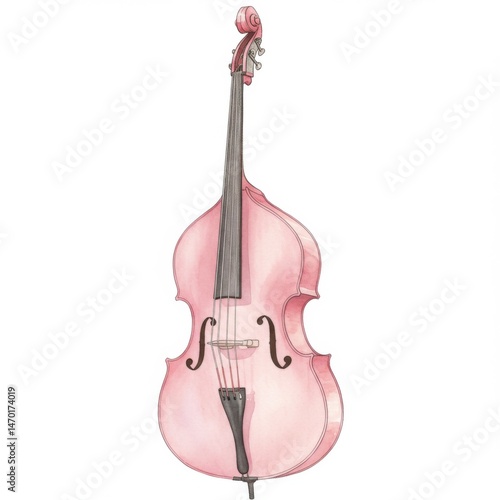 © AkshataHay, Naklejka premium Pink Watercolor Double Bass Illustration