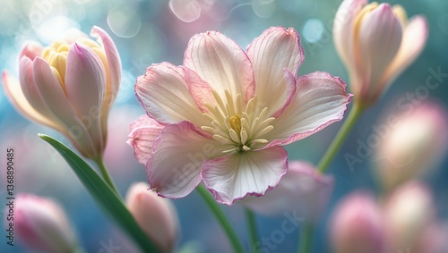 Fototapeta premium Pink & white delicate blossoms bloom, soft focus background, dreamy and ethereal vibe