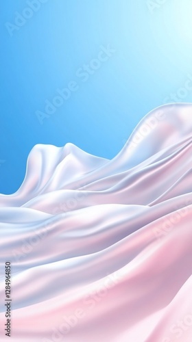 © naumi, Fototapeta premium Pink & white fabric waves, blue sky background