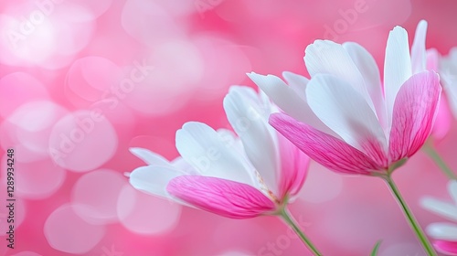 Fototapeta premium Pink white flowers, soft focus, bokeh background, spring romance, greeting card