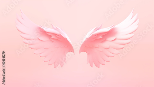 © Dima, Obraz premium Pink wings on a soft pink background. Generative AI