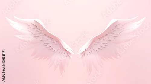 © Dima, Obraz premium Pink wings on a soft pink background. Generative AI