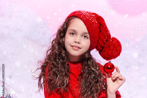 © Andrey Kiselev, Obraz premium Pink winter Girl Portrait