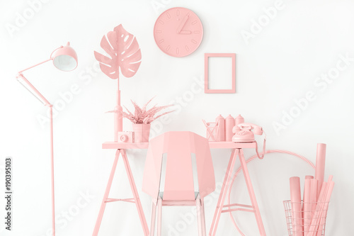 © Photographee.eu, Fototapeta premium Pink workspace interior