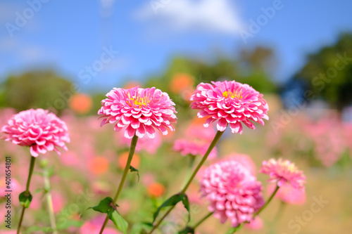 © 88studio, Obraz premium pink zinnia flower in meadow field