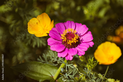 © Nikolett, Obraz premium Pink zinnia flower in the garden