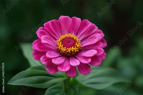 © Dzikrul Husnani, Obraz premium Pink Zinnia Flower with Yellow Center