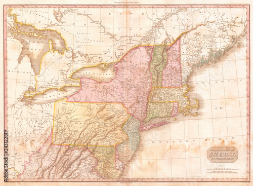 Obraz premium 1818, Pinkerton Map of the Northern United States, John Pinkerton, 1758 – 1826, Scottish antiquarian, cartographer, UK