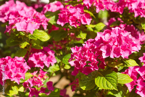 Fototapeta premium Pinkfarbene Blüten der Gartenhortensie