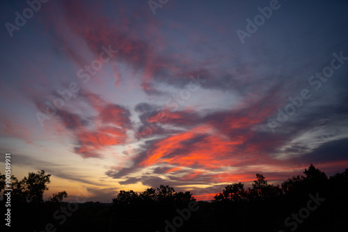 © Rolandas, Fototapeta premium pinkish-blue morning sky with dark trees