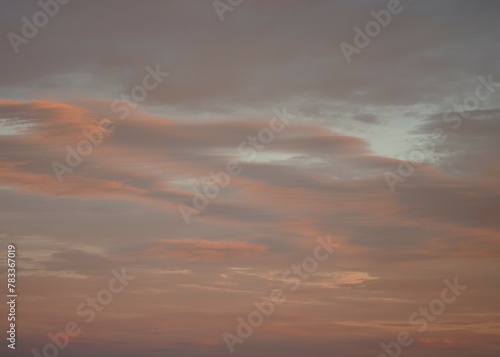 © Andriana Hoshko, Fototapeta premium Pinky sunset sky with pink clouds. Beautiful sky.