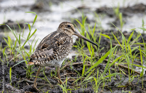 © photonewman, Fototapeta premium Pintail Snipe close-up while the bird stands on the ground