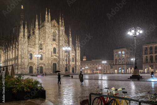 © tommypiconefotografo, Fototapeta premium pioggia in piazza duomo a Milano