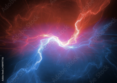 © Martin Capek, Fototapeta premium Piorun plazmy ognia i lodu, streszczenie tło elektryczne