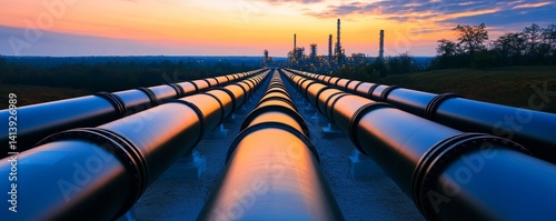 © Luvpix, Fototapeta premium Pipeline network at sunrise